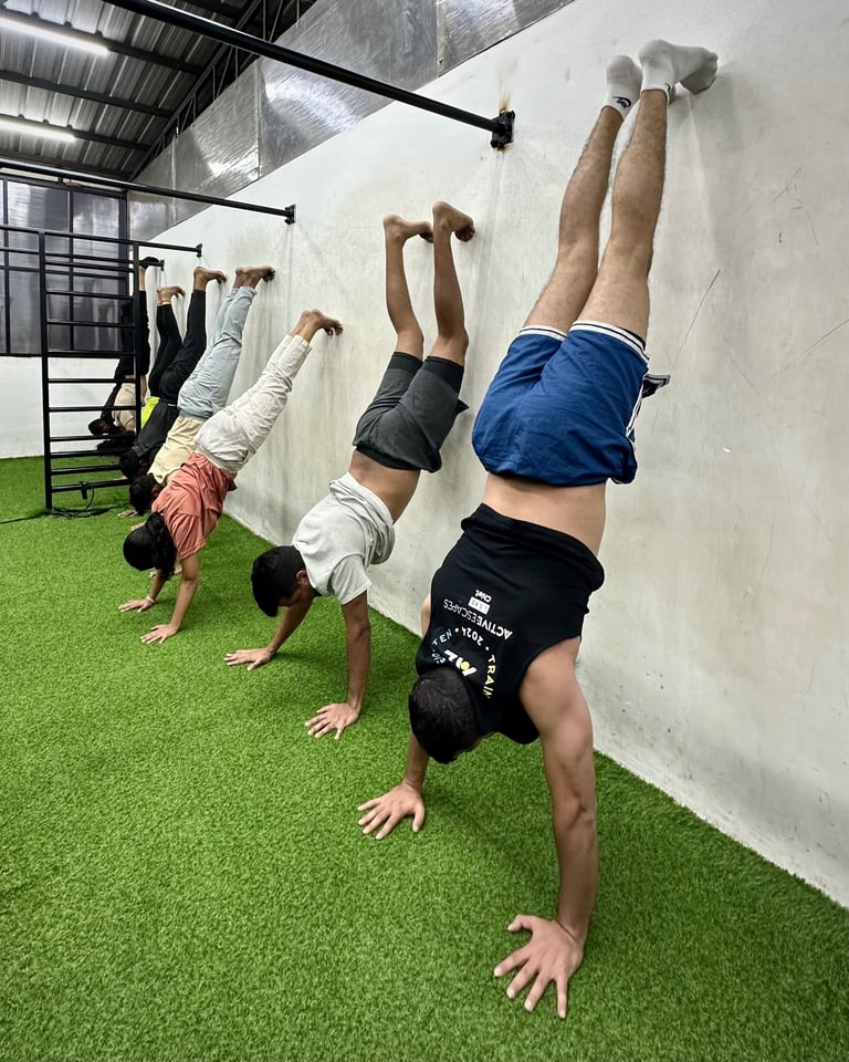 Participants learn safe wrist preparation, wall-assisted progressions, and foundational balance concepts , making it ideal for beginners.